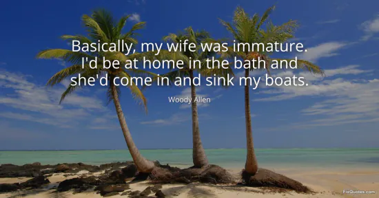Allen, Woody. (2026, February 20). Basically, my wife was immature. I'd be at home in the bath and she'd come in and sink my boats. FixQuotes. https://fixquotes.com/quotes/basically-my-wife-was-immature-id-be-at-home-in-15062/