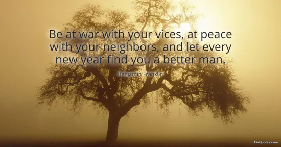 Franklin, Benjamin. (2026, January 14). Be at war with your vices, at peace with your neighbors, and let every new year find you a better man. FixQuotes. https://fixquotes.com/quotes/be-at-war-with-your-vices-at-peace-with-your-25468/
