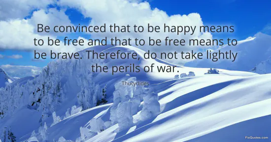 Thucydides. "Be convinced that to be happy means to be free and that to be free means to be brave. Therefore, do not take lightly the perils of war." FixQuotes. February 18, 2026. https://fixquotes.com/quotes/be-convinced-that-to-be-happy-means-to-be-free-65950/.