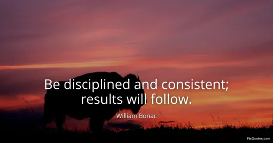Bonac, William. (2026, January 15). Be disciplined and consistent; results will follow. FixQuotes. https://fixquotes.com/quotes/be-disciplined-and-consistent-results-will-follow-172977/
