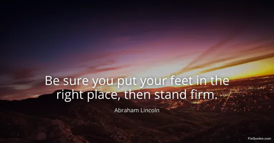 Lincoln, Abraham. (2026, January 15). Be sure you put your feet in the right place, then stand firm. FixQuotes. https://fixquotes.com/quotes/be-sure-you-put-your-feet-in-the-right-place-then-13617/