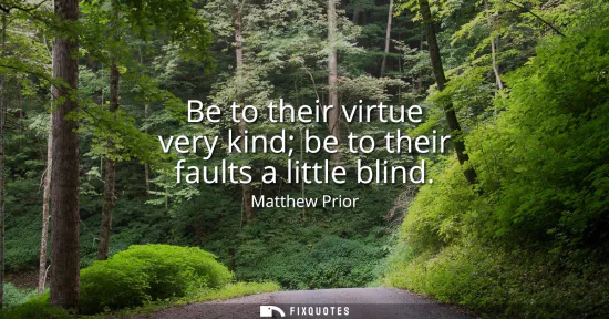 | Source | Matthew Prior — line often quoted as "Be to their virtue very kind; be to their faults a little blind" (attributed; listed on Wikiquote). |