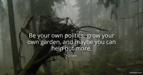 Torn, Rip. "Be your own politics, grow your own garden, and maybe you can help out more." FixQuotes. January 16, 2026. https://fixquotes.com/quotes/be-your-own-politics-grow-your-own-garden-and-88195/.