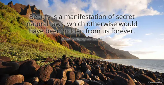Goethe, Johann Wolfgang Von. "Beauty is a manifestation of secret natural laws, which otherwise would have been hidden from us forever." FixQuotes. January 17, 2026. https://fixquotes.com/quotes/beauty-is-a-manifestation-of-secret-natural-laws-32097/.