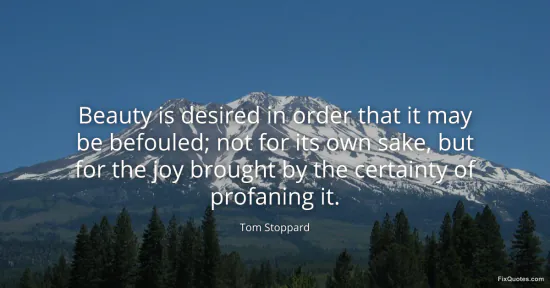 Stoppard, Tom. (2026, January 15). Beauty is desired in order that it may be befouled; not for its own sake, but for the joy brought by the certainty of profaning it. FixQuotes. https://fixquotes.com/quotes/beauty-is-desired-in-order-that-it-may-be-27674/