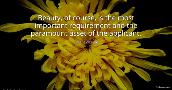 Ziegfeld, Florenz. (2026, January 17). Beauty, of course, is the most important requirement and the paramount asset of the applicant. FixQuotes. https://fixquotes.com/quotes/beauty-of-course-is-the-most-important-59421/