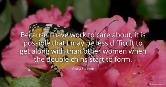 Steinem, Gloria. (2026, January 15). Because I have work to care about, it is possible that I may be less difficult to get along with than other women when the double chins start to form. FixQuotes. https://fixquotes.com/quotes/because-i-have-work-to-care-about-it-is-possible-171368/