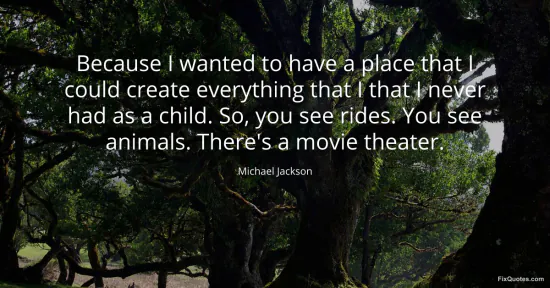 Jackson, Michael. (2026, January 18). Because I wanted to have a place that I could create everything that I that I never had as a child. So, you see rides. You see animals. There's a movie theater. FixQuotes. https://fixquotes.com/quotes/because-i-wanted-to-have-a-place-that-i-could-842/
