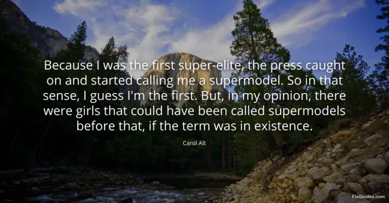 Alt, Carol. "Because I was the first super-elite, the press caught on and started calling me a supermodel. So in that sense, I guess I'm the first. But, in my opinion, there were girls that could have been called supermodels before that, if the term was in existence." FixQuotes. January 15, 2026. https://fixquotes.com/quotes/because-i-was-the-first-super-elite-the-press-44140/.
