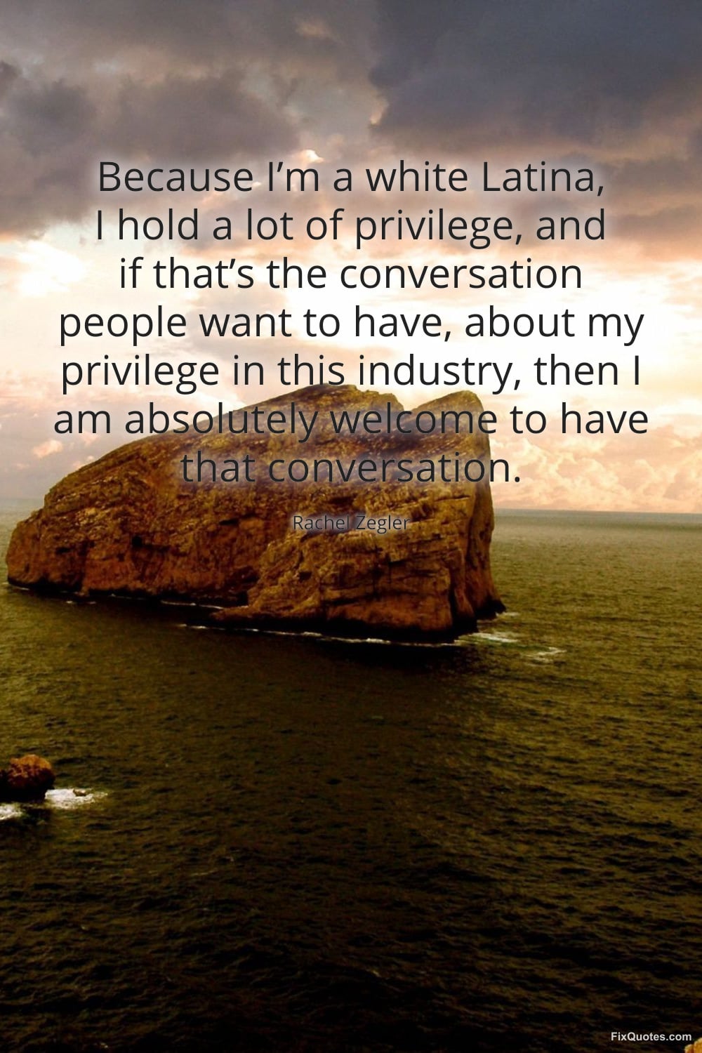 Zegler, Rachel. (2026, March 18). Because I’m a white Latina, I hold a lot of privilege, and if that’s the conversation people want to have, about my privilege in this industry, then I am absolutely welcome to have that conversation. FixQuotes. https://fixquotes.com/quotes/because-im-a-white-latina-i-hold-a-lot-of-186143/