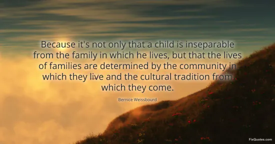 "Because it's not only that a child is inseparable from the family in which he lives, but that the lives of families are determined by the community in which they live and the cultural tradition from which they come"