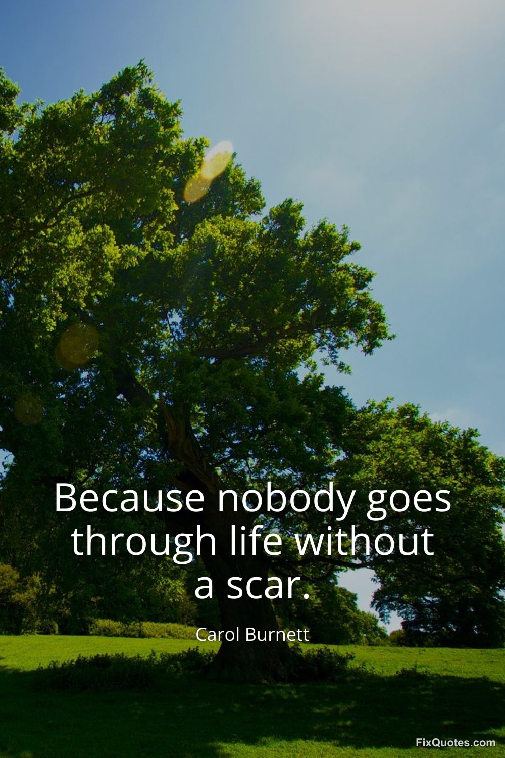 Burnett, Carol. "Because nobody goes through life without a scar." FixQuotes. January 15, 2026. https://fixquotes.com/quotes/because-nobody-goes-through-life-without-a-scar-157894/.