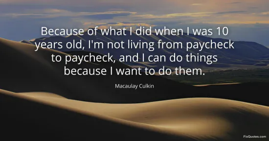 Culkin, Macaulay. (2026, January 16). Because of what I did when I was 10 years old, I'm not living from paycheck to paycheck, and I can do things because I want to do them. FixQuotes. https://fixquotes.com/quotes/because-of-what-i-did-when-i-was-10-years-old-im-136298/