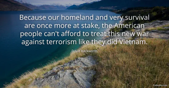 Hackworth, David. (2026, January 16). Because our homeland and very survival are once more at stake, the American people can't afford to treat this new war against terrorism like they did Vietnam. FixQuotes. https://fixquotes.com/quotes/because-our-homeland-and-very-survival-are-once-110961/