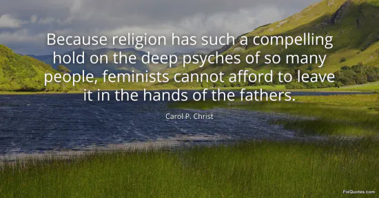 Christ, Carol P. "Because religion has such a compelling hold on the deep psyches of so many people, feminists cannot afford to leave it in the hands of the fathers." FixQuotes. January 17, 2026. https://fixquotes.com/quotes/because-religion-has-such-a-compelling-hold-on-51777/.