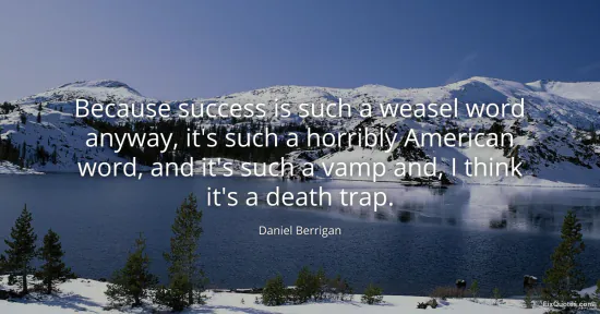Berrigan, Daniel. (2026, January 16). Because success is such a weasel word anyway, it's such a horribly American word, and it's such a vamp and, I think it's a death trap. FixQuotes. https://fixquotes.com/quotes/because-success-is-such-a-weasel-word-anyway-its-110696/