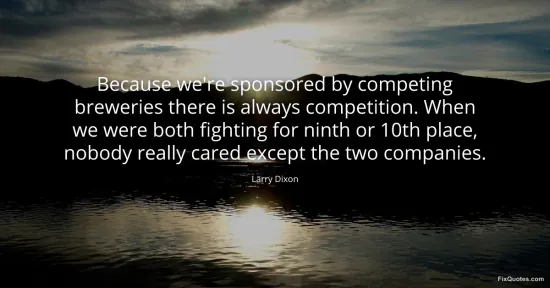 Dixon, Larry. (2026, January 16). Because we're sponsored by competing breweries there is always competition. When we were both fighting for ninth or 10th place, nobody really cared except the two companies. FixQuotes. https://fixquotes.com/quotes/because-were-sponsored-by-competing-breweries-133072/