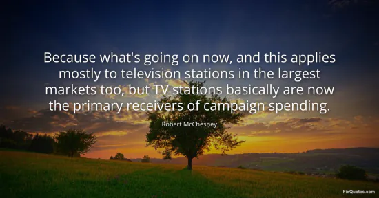 McChesney, Robert. "Because what's going on now, and this applies mostly to television stations in the largest markets too, but TV stations basically are now the primary receivers of campaign spending." FixQuotes. January 15, 2026. https://fixquotes.com/quotes/because-whats-going-on-now-and-this-applies-151243/.
