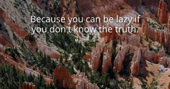 White, Meg. (2026, January 16). Because you can be lazy if you don't know the truth. FixQuotes. https://fixquotes.com/quotes/because-you-can-be-lazy-if-you-dont-know-the-truth-120197/