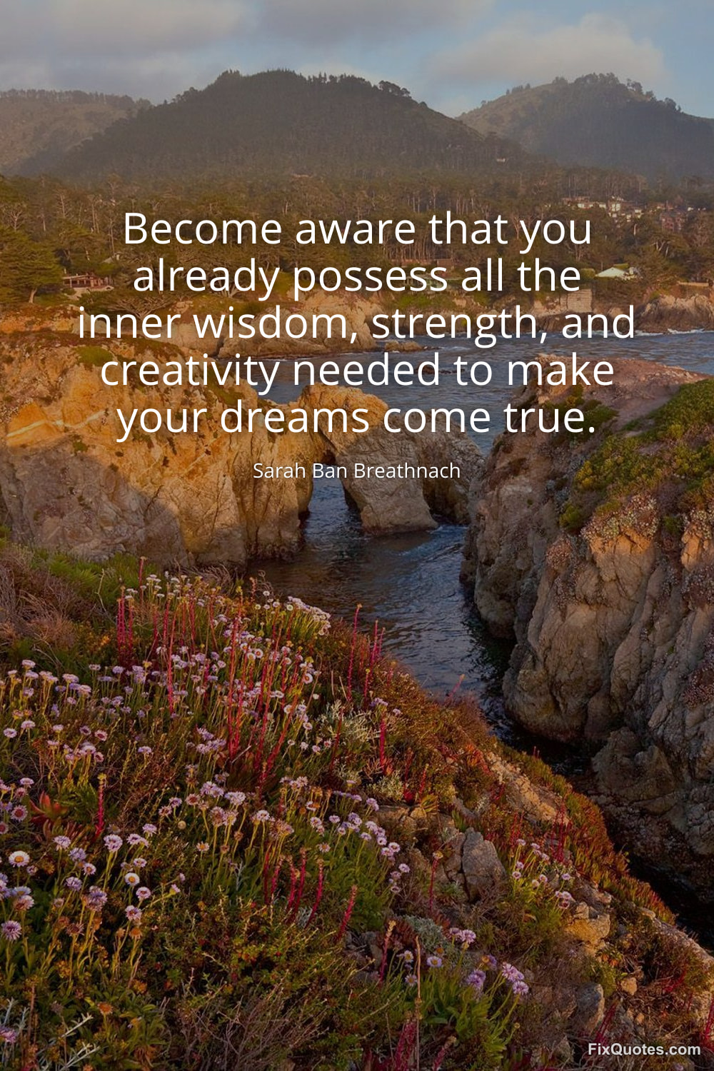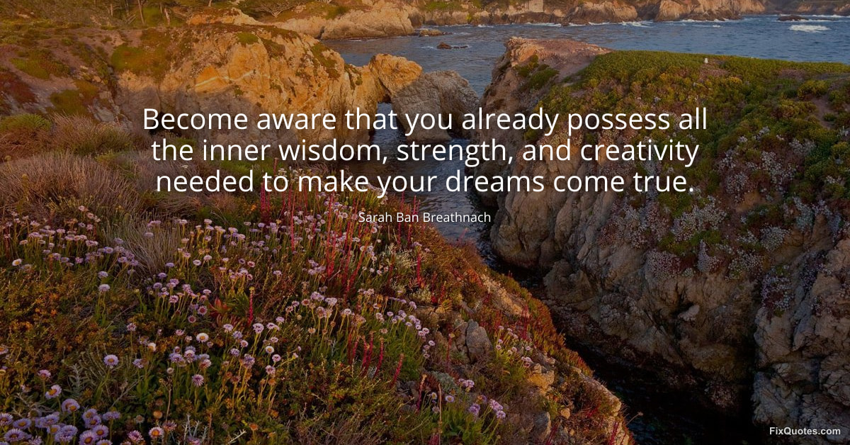 Breathnach, Sarah Ban. (2026, January 11). Become aware that you already possess all the inner wisdom, strength, and creativity needed to make your dreams come true. FixQuotes. https://fixquotes.com/quotes/become-aware-that-you-already-possess-all-the-183950/