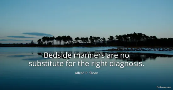 Sloan, Alfred P. (2026, January 14). Bedside manners are no substitute for the right diagnosis. FixQuotes. https://fixquotes.com/quotes/bedside-manners-are-no-substitute-for-the-right-138125/