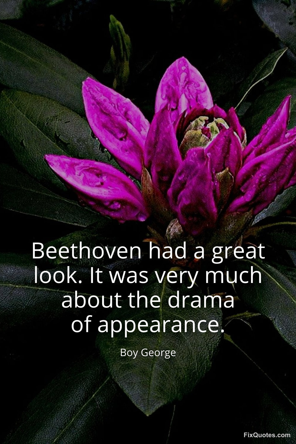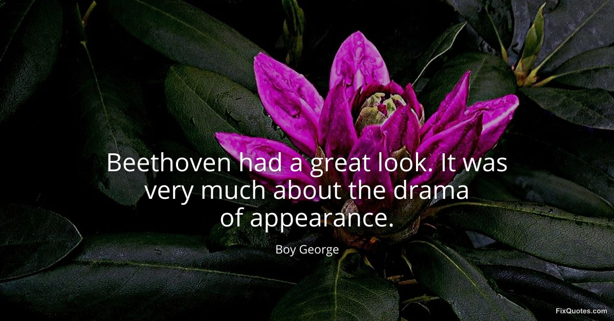 George, Boy. "Beethoven had a great look. It was very much about the drama of appearance." FixQuotes. January 15, 2026. https://fixquotes.com/quotes/beethoven-had-a-great-look-it-was-very-much-about-139858/.