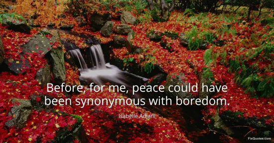Adjani, Isabelle. (2026, January 15). Before, for me, peace could have been synonymous with boredom. FixQuotes. https://fixquotes.com/quotes/before-for-me-peace-could-have-been-synonymous-151004/