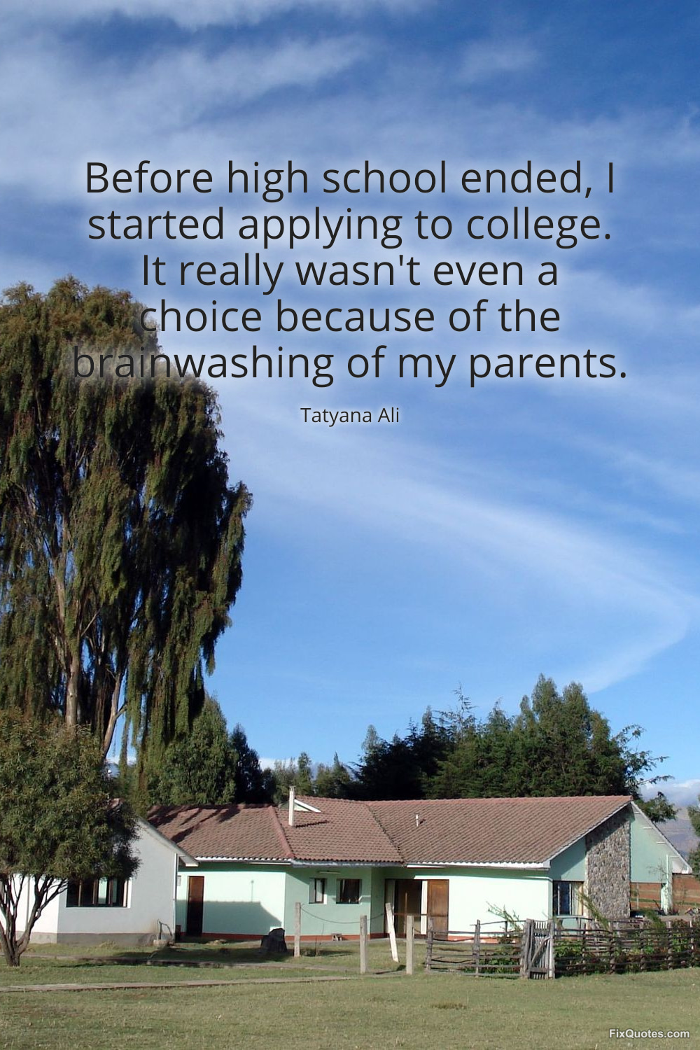 Ali, Tatyana. "Before high school ended, I started applying to college. It really wasn't even a choice because of the brainwashing of my parents." FixQuotes. January 16, 2026. https://fixquotes.com/quotes/before-high-school-ended-i-started-applying-to-118450/.