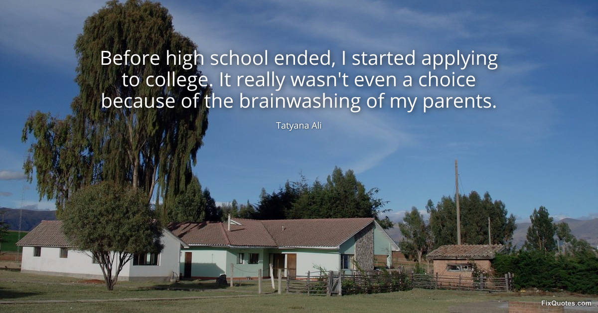 Ali, Tatyana. (2026, January 16). Before high school ended, I started applying to college. It really wasn't even a choice because of the brainwashing of my parents. FixQuotes. https://fixquotes.com/quotes/before-high-school-ended-i-started-applying-to-118450/