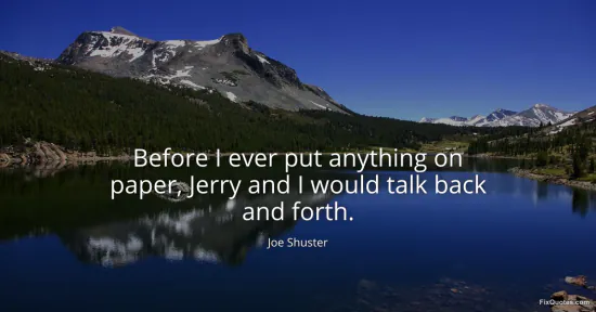 Shuster, Joe. (2026, January 17). Before I ever put anything on paper, Jerry and I would talk back and forth. FixQuotes. https://fixquotes.com/quotes/before-i-ever-put-anything-on-paper-jerry-and-i-55745/