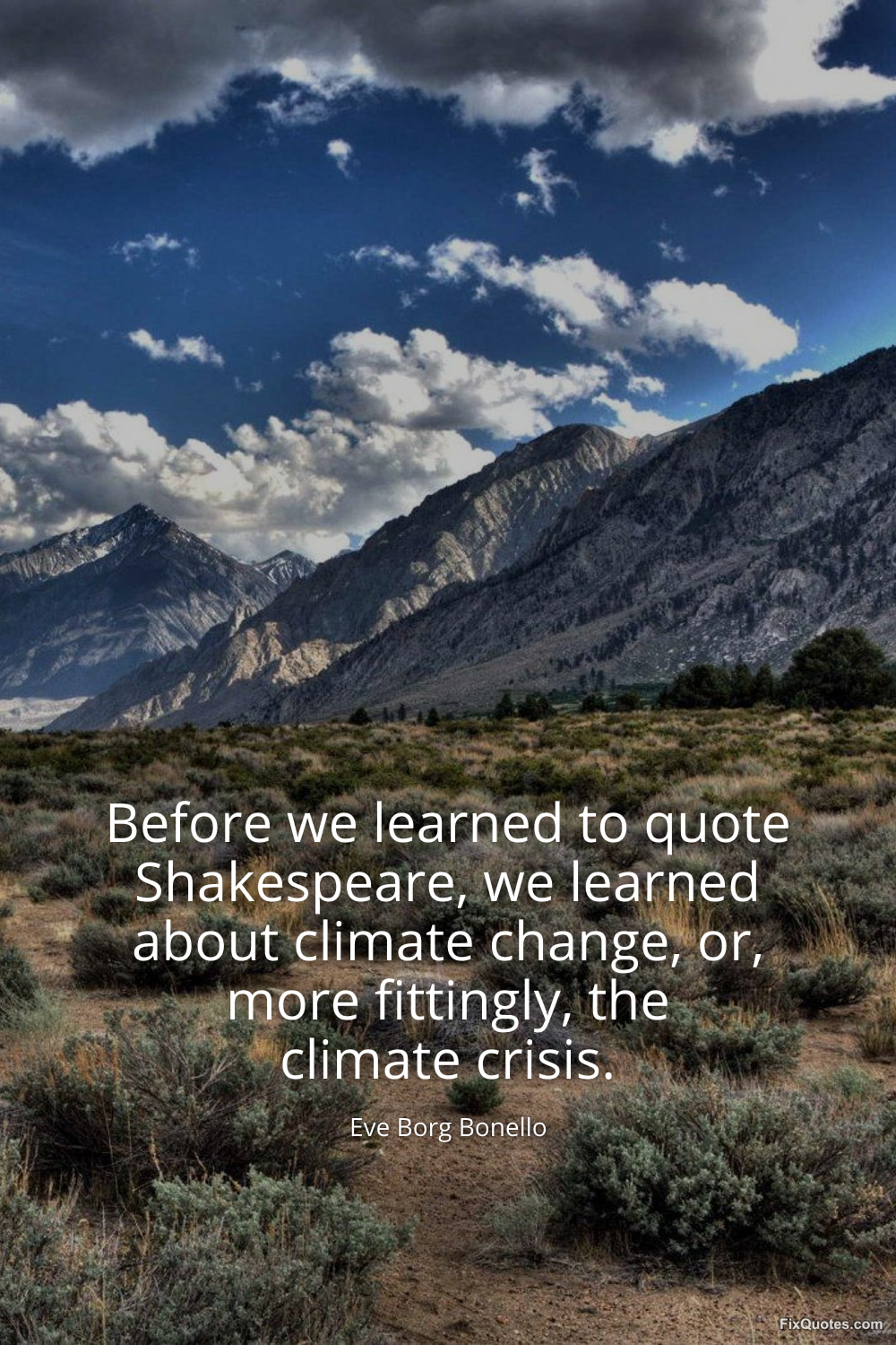 Bonello, Eve Borg. (2026, March 6). Before we learned to quote Shakespeare, we learned about climate change, or, more fittingly, the climate crisis. FixQuotes. https://fixquotes.com/quotes/before-we-learned-to-quote-shakespeare-we-learned-185688/
