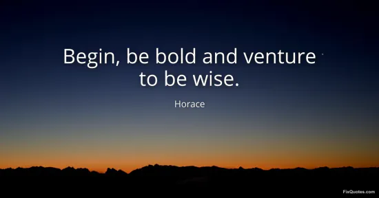 Horace. "Begin, be bold and venture to be wise." FixQuotes. January 14, 2026. https://fixquotes.com/quotes/begin-be-bold-and-venture-to-be-wise-8636/.