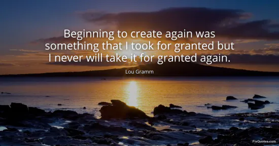 Gramm, Lou. (2026, January 15). Beginning to create again was something that I took for granted but I never will take it for granted again. FixQuotes. https://fixquotes.com/quotes/beginning-to-create-again-was-something-that-i-155440/