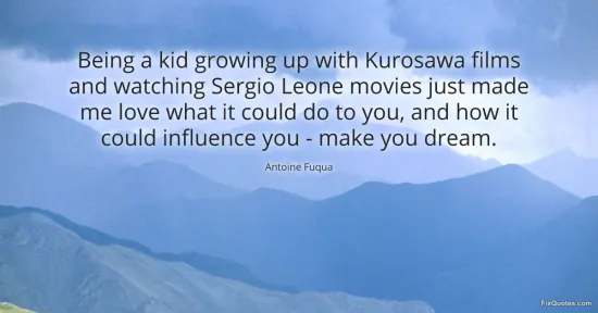 Fuqua, Antoine. (2026, January 16). Being a kid growing up with Kurosawa films and watching Sergio Leone movies just made me love what it could do to you, and how it could influence you - make you dream. FixQuotes. https://fixquotes.com/quotes/being-a-kid-growing-up-with-kurosawa-films-and-138907/