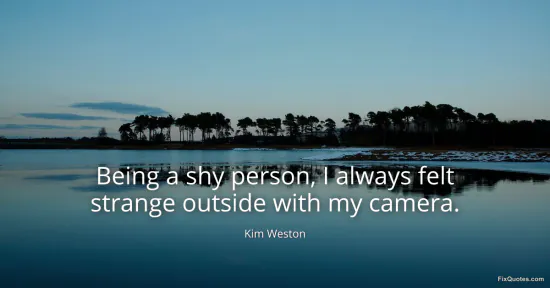 Weston, Kim. (2026, January 18). Being a shy person, I always felt strange outside with my camera. FixQuotes. https://fixquotes.com/quotes/being-a-shy-person-i-always-felt-strange-outside-4122/