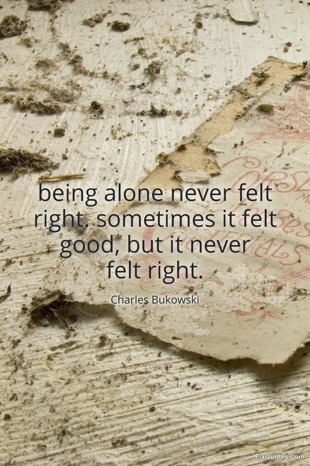 Bukowski, Charles. "being alone never felt right. sometimes it felt good, but it never felt right." FixQuotes. February 10, 2026. https://fixquotes.com/quotes/being-alone-never-felt-right-sometimes-it-felt-185196/.