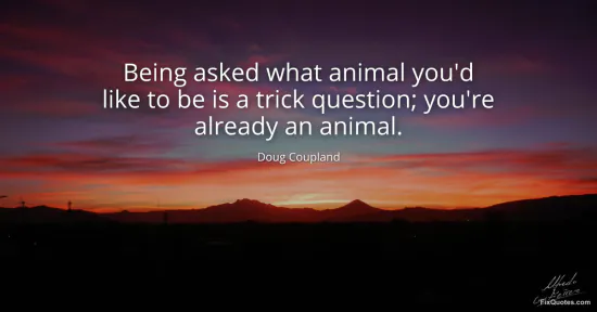 Coupland, Doug. "Being asked what animal you'd like to be is a trick question; you're already an animal." FixQuotes. January 17, 2026. https://fixquotes.com/quotes/being-asked-what-animal-youd-like-to-be-is-a-55917/.