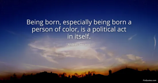 Serrano, Andres. (2026, January 18). Being born, especially being born a person of color, is a political act in itself. FixQuotes. https://fixquotes.com/quotes/being-born-especially-being-born-a-person-of-4061/