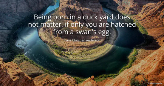 Anderson, Hans Christian. "Being born in a duck yard does not matter, if only you are hatched from a swan's egg." FixQuotes. January 15, 2026. https://fixquotes.com/quotes/being-born-in-a-duck-yard-does-not-matter-if-only-55317/.