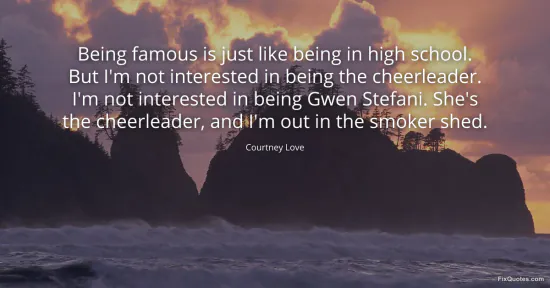 Love, Courtney. (2026, January 17). Being famous is just like being in high school. But I'm not interested in being the cheerleader. I'm not interested in being Gwen Stefani. She's the cheerleader, and I'm out in the smoker shed. FixQuotes. https://fixquotes.com/quotes/being-famous-is-just-like-being-in-high-school-46356/