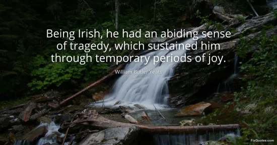 Yeats, William Butler. "Being Irish, he had an abiding sense of tragedy, which sustained him through temporary periods of joy." FixQuotes. January 14, 2026. https://fixquotes.com/quotes/being-irish-he-had-an-abiding-sense-of-tragedy-2378/.