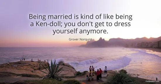Norquist, Grover. "Being married is kind of like being a Ken-doll; you don't get to dress yourself anymore." FixQuotes. January 15, 2026. https://fixquotes.com/quotes/being-married-is-kind-of-like-being-a-ken-doll-142445/.