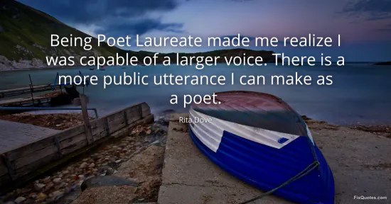 Dove, Rita. (2026, January 15). Being Poet Laureate made me realize I was capable of a larger voice. There is a more public utterance I can make as a poet. FixQuotes. https://fixquotes.com/quotes/being-poet-laureate-made-me-realize-i-was-capable-155898/