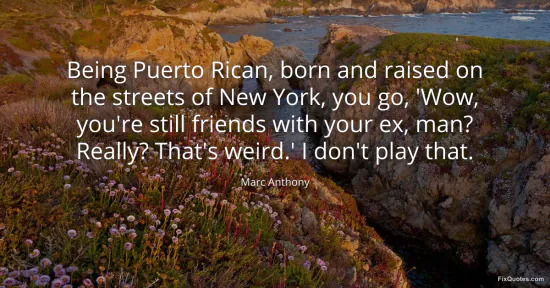 Anthony, Marc. (2026, January 17). Being Puerto Rican, born and raised on the streets of New York, you go, 'Wow, you're still friends with your ex, man? Really? That's weird.' I don't play that. FixQuotes. https://fixquotes.com/quotes/being-puerto-rican-born-and-raised-on-the-streets-76830/