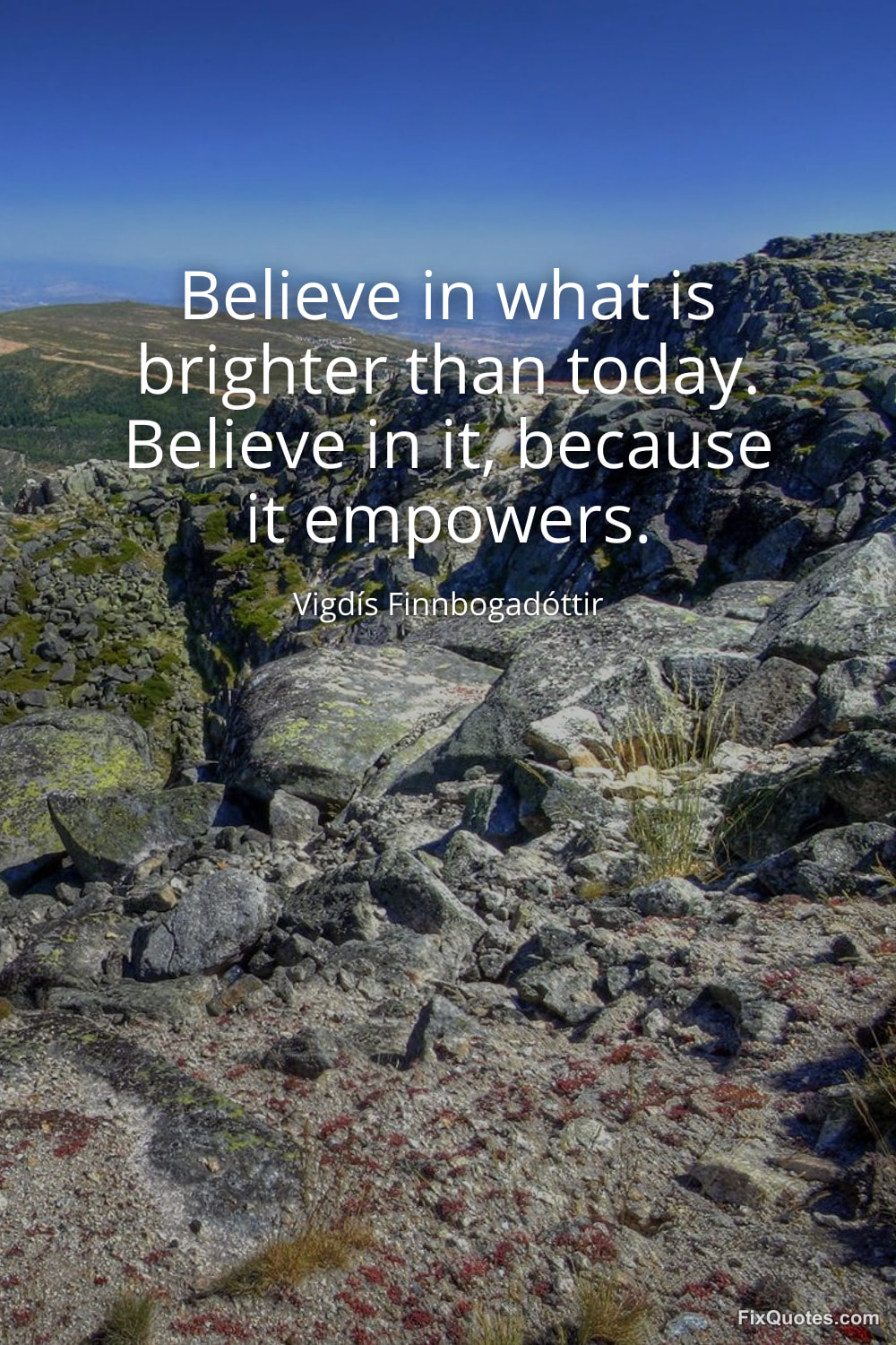 Finnbogadóttir, Vigdís. (2026, February 15). Believe in what is brighter than today. Believe in it, because it empowers. FixQuotes. https://fixquotes.com/quotes/believe-in-what-is-brighter-than-today-believe-in-185411/