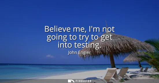 "Believe me, I'm not going to try to get into testing"
