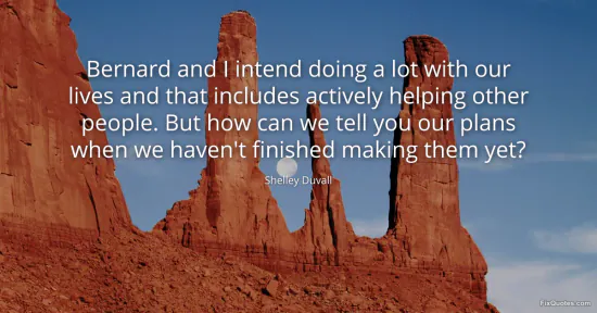 Duvall, Shelley. (2026, January 16). Bernard and I intend doing a lot with our lives and that includes actively helping other people. But how can we tell you our plans when we haven't finished making them yet? FixQuotes. https://fixquotes.com/quotes/bernard-and-i-intend-doing-a-lot-with-our-lives-84154/