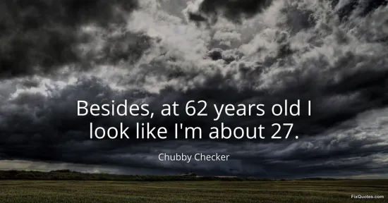 Checker, Chubby. (2026, January 17). Besides, at 62 years old I look like I'm about 27. FixQuotes. https://fixquotes.com/quotes/besides-at-62-years-old-i-look-like-im-about-27-44404/