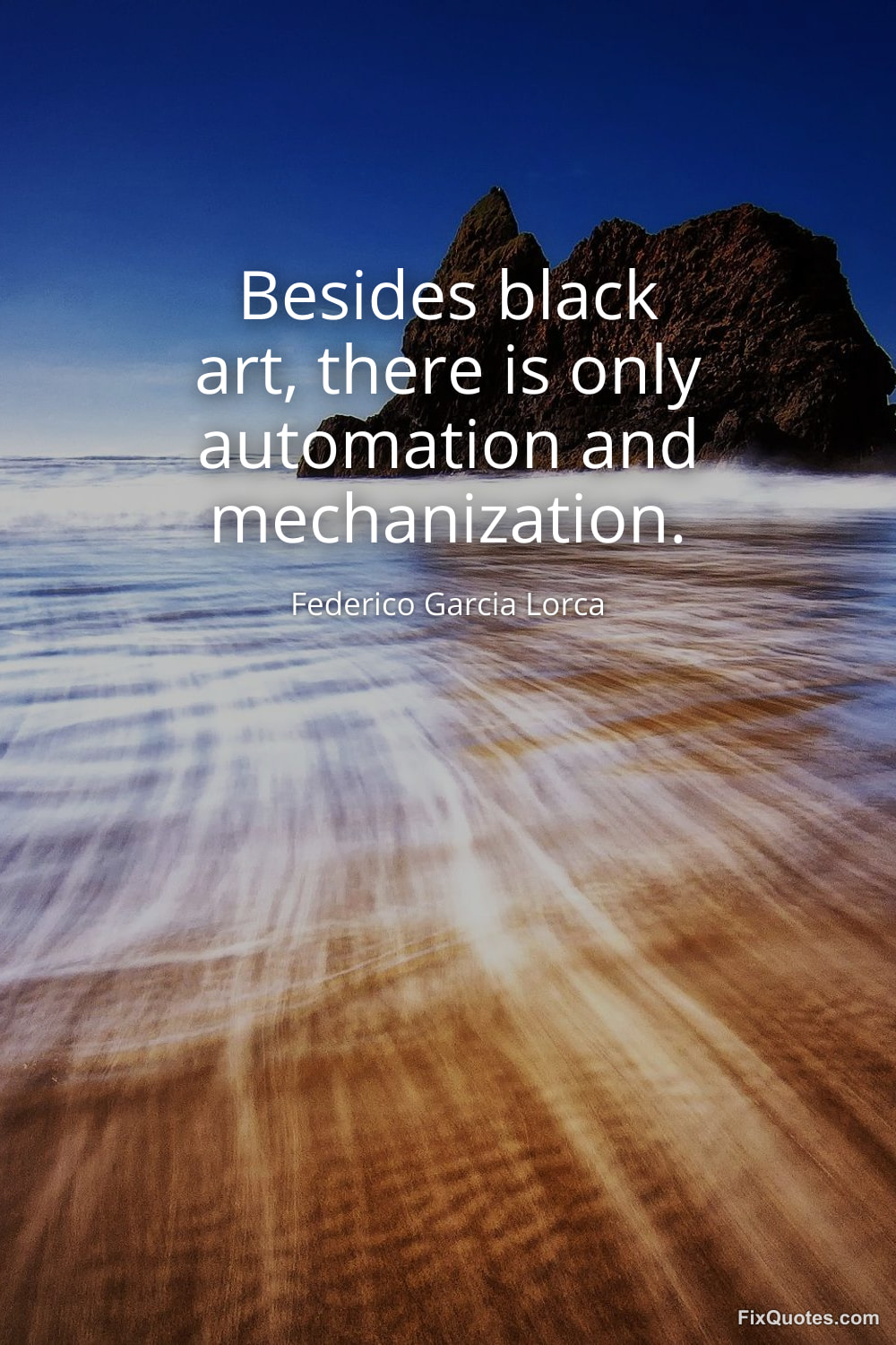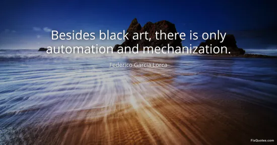 Lorca, Federico Garcia. (2026, January 14). Besides black art, there is only automation and mechanization. FixQuotes. https://fixquotes.com/quotes/besides-black-art-there-is-only-automation-and-47950/