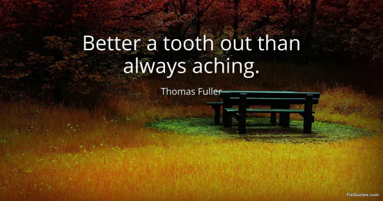 Fuller, Thomas. (2026, January 18). Better a tooth out than always aching. FixQuotes. https://fixquotes.com/quotes/better-a-tooth-out-than-always-aching-10306/